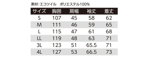 他両胸ファスナー付縦ポケット、両脇ポケット、左袖ペン差し付、氏名片布付。