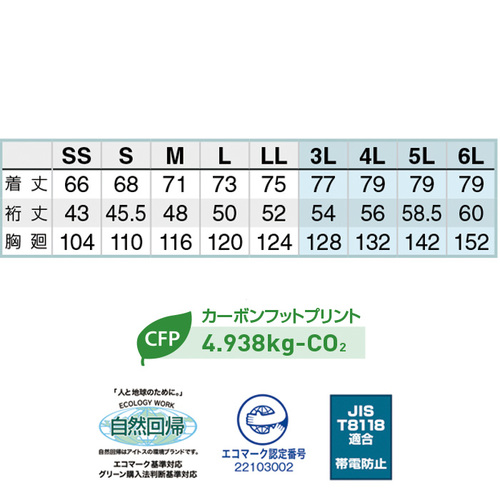 アイトス作業服AZ-1930シリーズ エコワーカーストレッチ作業着