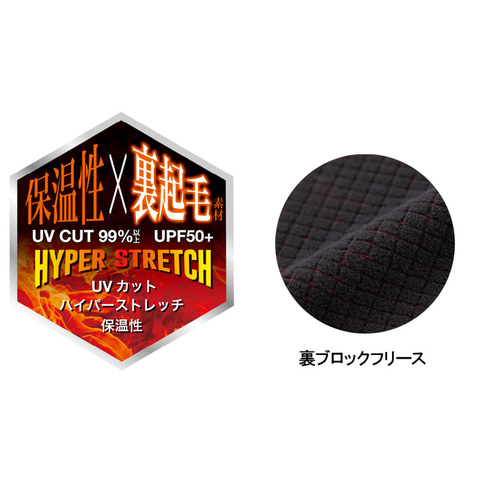 保温性に優れた裏起毛素材とブロックフリースが優れた保温力を発揮し、フラットシーマ縫製と“鼻ダムダーツ”構造で肌にやさしく呼吸もしやすい快適設計。