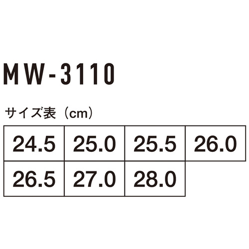 • COCOS-MW-3110 フライワーク ダイヤル セーフティースニーカー4.0のサイズ表