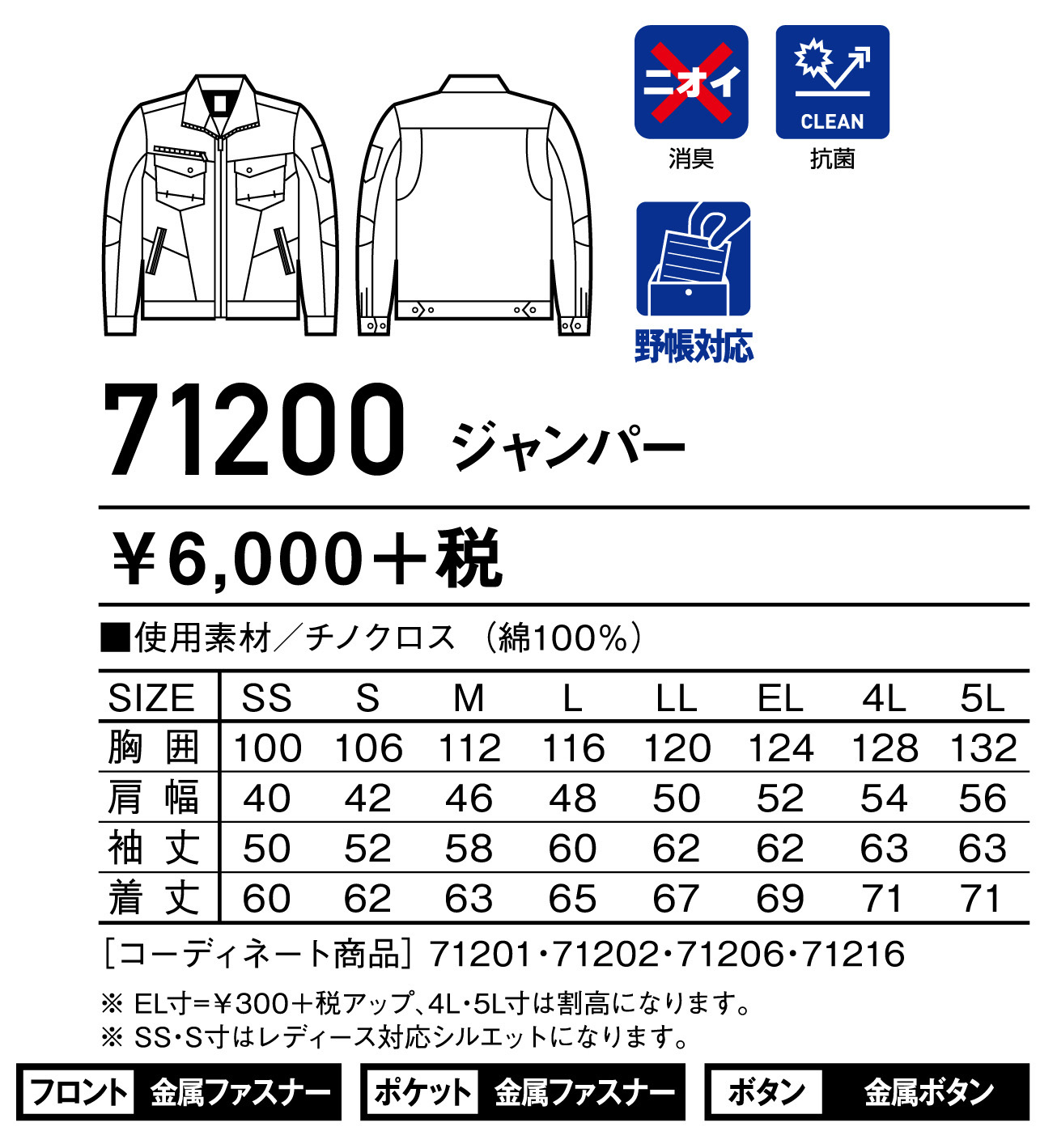 天然素材特有の着心地の良さと風合いが魅力。 ハードな現場に最適な綿100%カジュアルワークウエア。