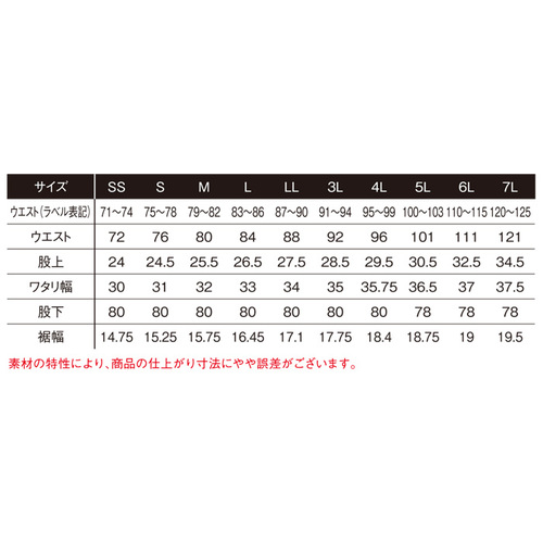 • IZFRONTIER3162 カットソーA.D.ストレッチカーゴパンツのサイズ表