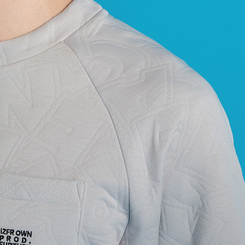 ◆ブランドロゴのアルファベットを生地の3Dジャガード柄で大胆に表現。ポップ且つラグジュアリーなルックスを発揮します。