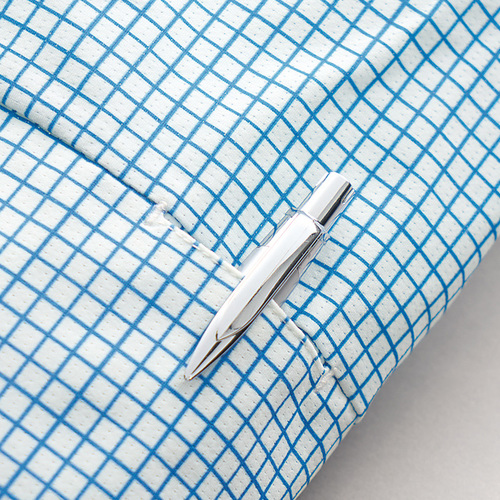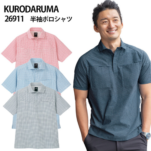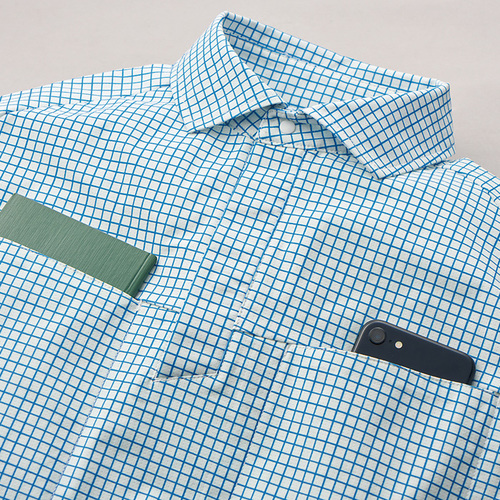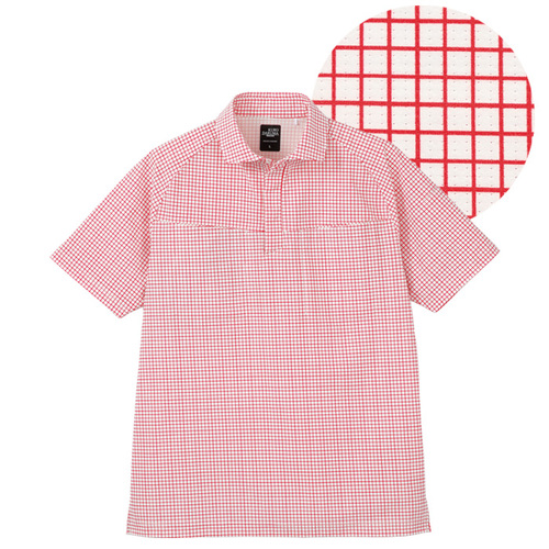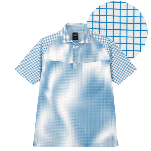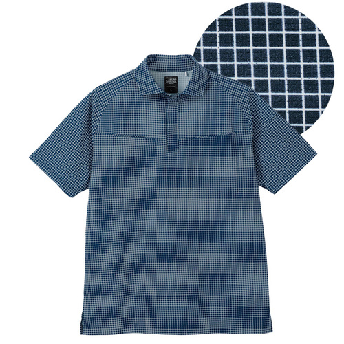 落ち着いた格子柄のデザインが清潔感を演出。 軽くて通気性やストレッチ性に優れた制電糸入り快適素材採用の半袖ポロシャツ。