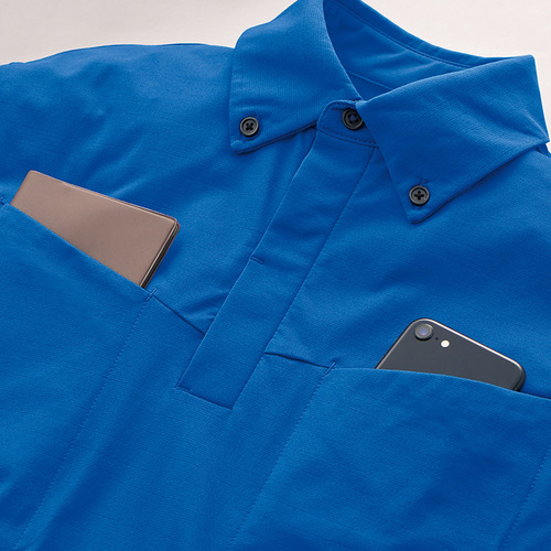 環境に優しく着心地や使い心地を快適にする繊維。(※SOLOTEX®糸を一部使用) 制電糸使用でさらに機能を高めたお洒落なボタンダウン半袖ポロシャツ。