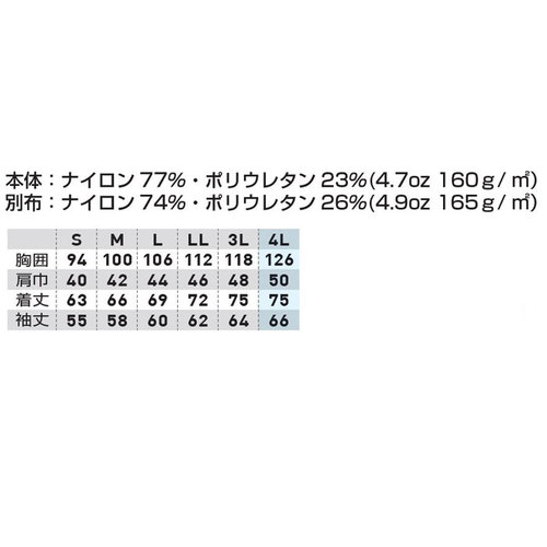 別布:ナイロン74%・ポリウレタン26%(4.9oz 165g/㎡) - 色 :