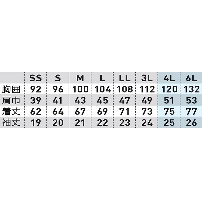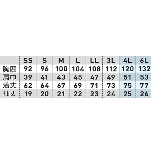 • SOWA50390 長袖ポロシャツ(胸ポケット付き)のサイズ表