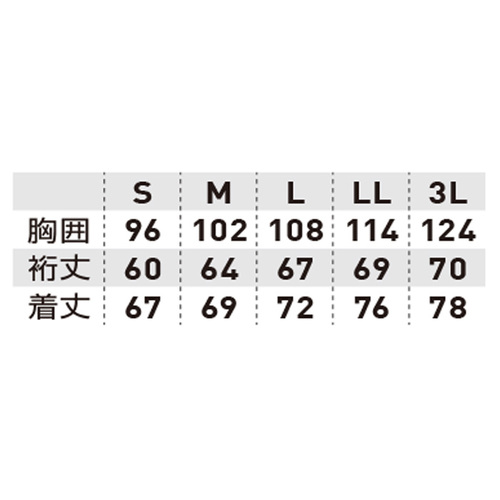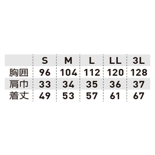 • SOWA7985-02 鯉口シャツ(ニット)のサイズ表
