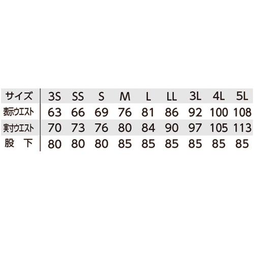 • TAKA_DV-J340 ストレッチパンツのサイズ表
