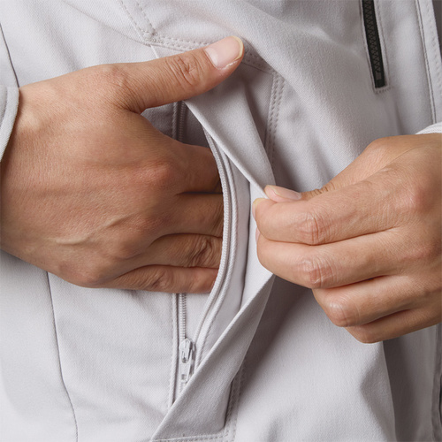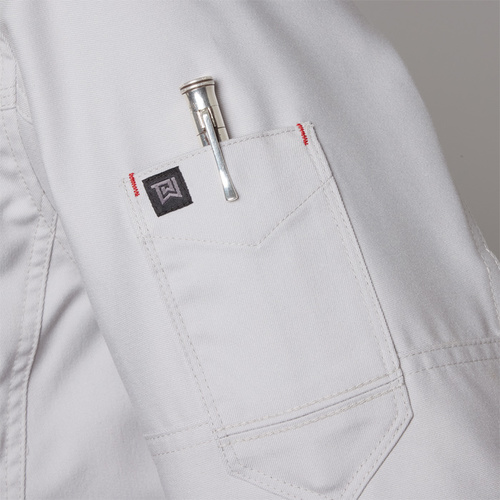 植物由来の再生資源を粗原料とした東レの合繊素材「エコディア®」を使用し、環境配慮型商品をラインナップしたTW-ECOシリーズ。東レ独自の特殊高捲縮加工糸と高度な生地設計との組み合わせによって高いストレッチ性とストレッチバック性を発現する「Lightfix®」を採用し、ウェア着用時の身体的ストレスを解消する『軽い』『伸びる』『動きやすい』を実現。企業に求められる環境への配慮と作業者の着用快適性を両立したニュースタンダートモデル。随所に設計された多様なツールが携帯できる抜群の収納性を発揮しつつ見た目はスタイリッシュ。