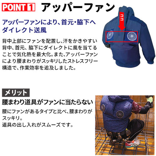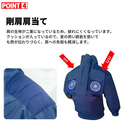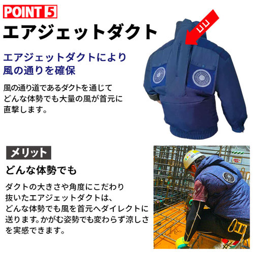 夏の屋外や空調が難しい建物での作業、溶接作業に抜群の効果を発揮!扇風機のついた作業服です。 ファン付き商品の、お客様のご都合による返品や交換は出来かねますので、ご了承をお願いいたします。