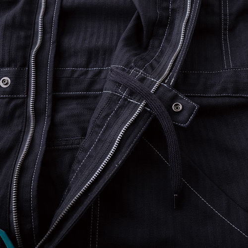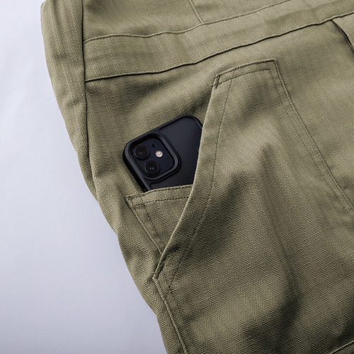 ●コットンライクな風合いで、ストレッチの効いた素材に織り柄を入れて表面感を出しました ●デザインポイントとなる大きなカーゴポケットが無骨なイメージ