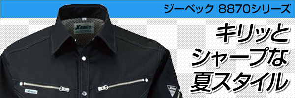こんにちは、ライオン屋スタッフのユリです! 皆さんは、ジーベック(XEBEC)という作業服のブランド、ご存知ですか? 聞いたことないで〜(0.0) という方も「角田信朗さんがCMに出ているあのブランド」と聞けばピンときますよね! そのジーベック(XEBEC)から、今回は「お店でよく売れているのでネットでもご紹介したい!」というとっておき商品、ジーベック8870シリーズを徹底解剖。小さい写真はすべてビッグサイズに拡大可能です☆