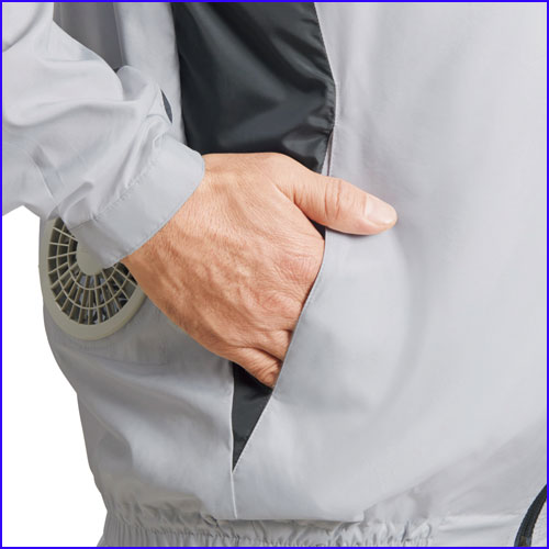 夏の屋外や空調が難しい建物での作業に抜群の効果を発揮!扇風機のついた作業服です。